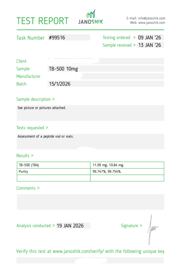 This product contains TB-500 in lyophilized (freeze-dried) powder form, requiring reconstitution before use.
